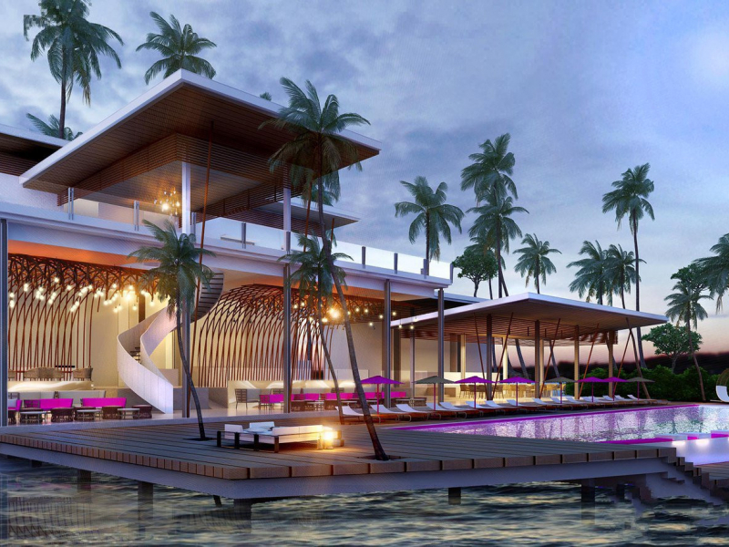 这是一座打破马代传统茅草屋风格,大胆前卫、以粉红性感亮相的奢华现代化岛屿...
