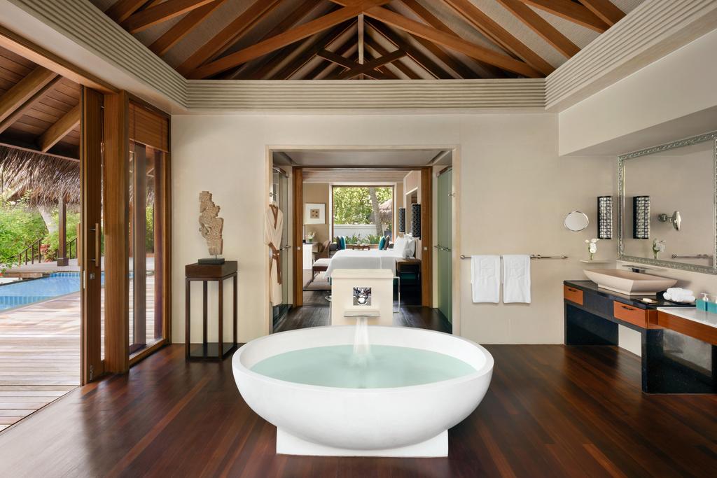 别墅卧室及卫生间坐拥大海,露天庭院配备户外家具,方便宾客在此享用星光晚餐。