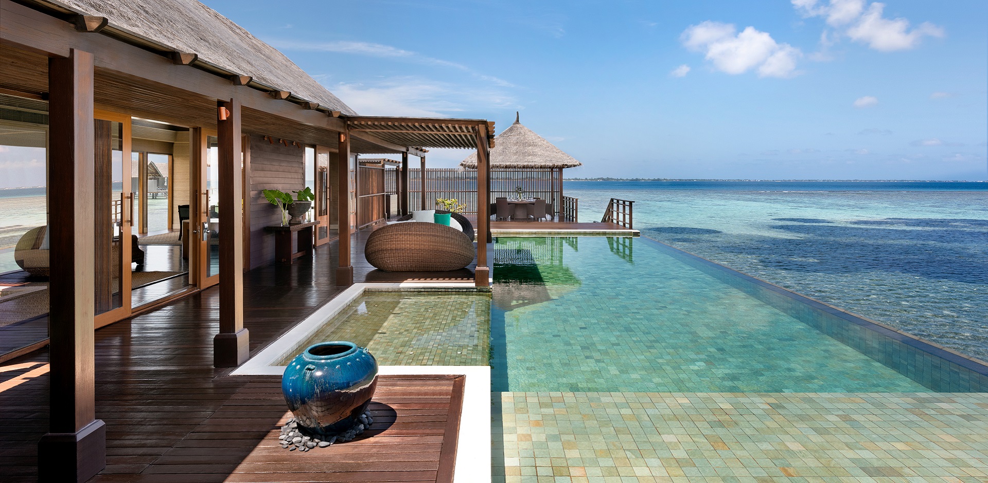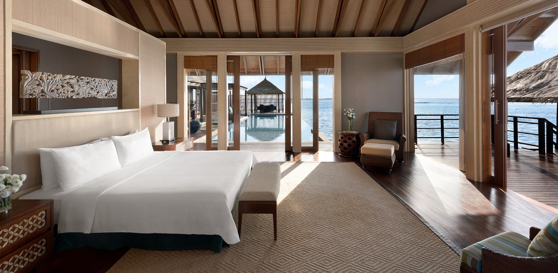 在当地的迪维希语中,Muthee意为“珍珠”。作为马尔代夫香格里拉度假酒店唯一一套此类房型,Muthee别墅恰如其名。在这片远离尘嚣的桃源之地,宾客可以沉醉于水天一色的浩瀚景象,尽享悠然自得的度假时光。