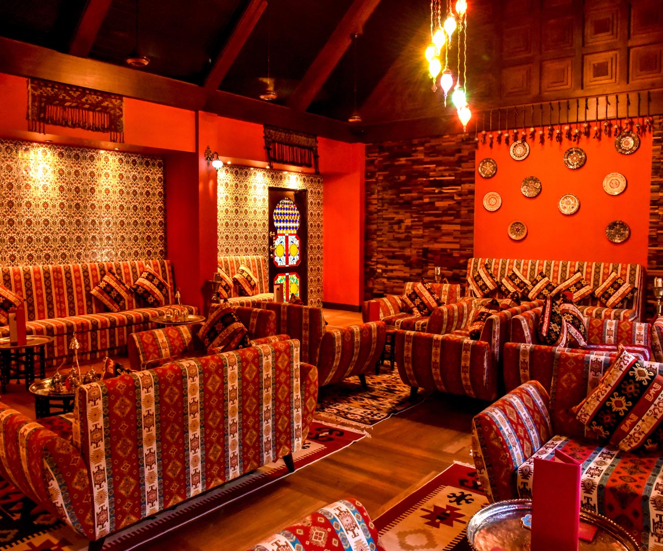 Fez是一个水烟休息室,室内装修运用隆重的阿拉伯色彩,优雅的设计以及各种不同的芳香搭配,营造了一种让人心情十分愉悦的氛围。