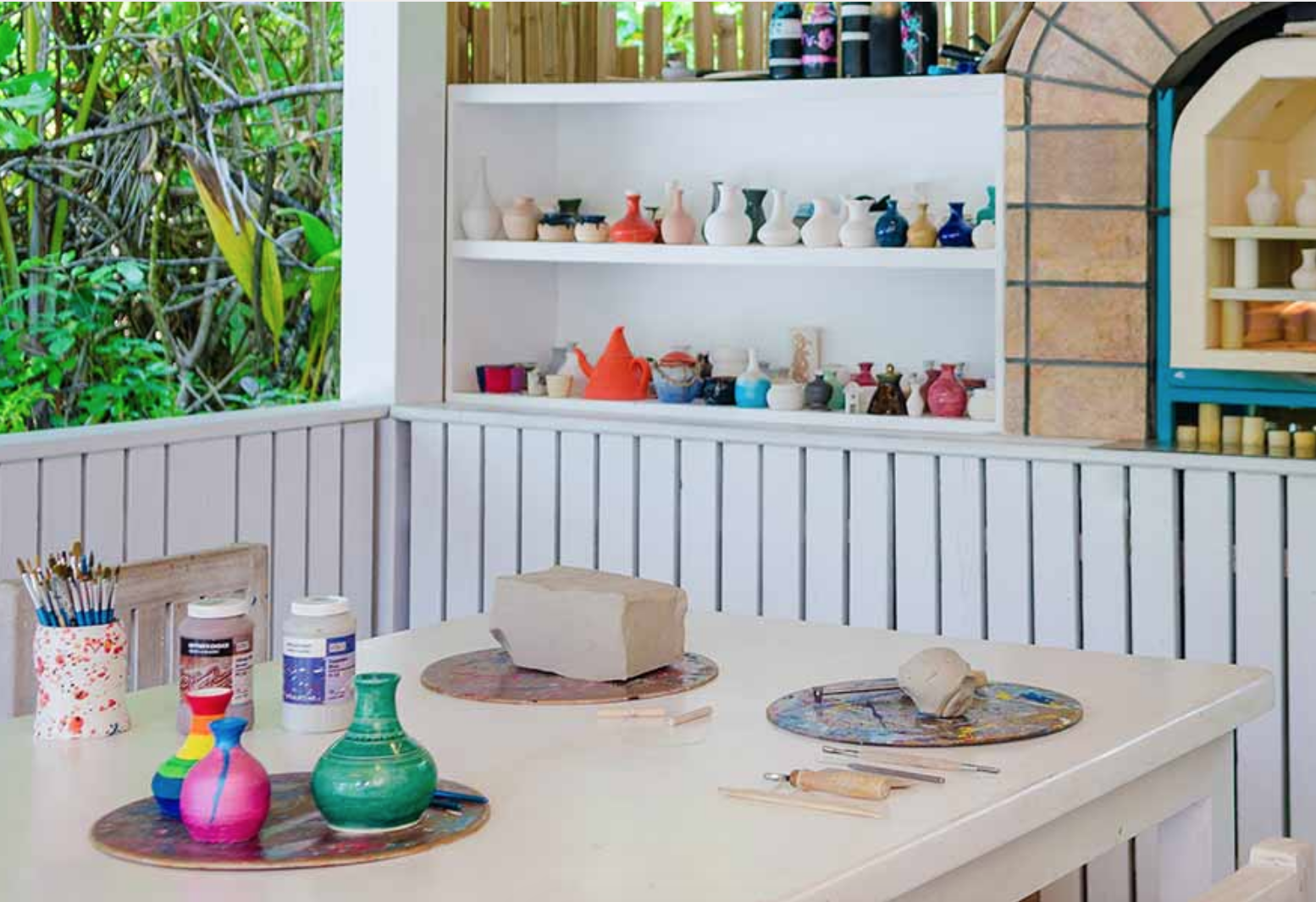 One&Only Reethi Rah 的驻地艺术家教授陶瓷、彩色玻璃,威尼斯面具装饰、微型雕塑、冷瓷植物、珠宝、废书制作等基于对象的课程。