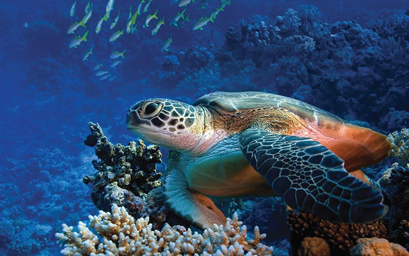 在乘坐传统的dhoni短途游船之后,将抵达'Turtle Reef',与濒临灭绝的玳瑁海龟一起潜水。