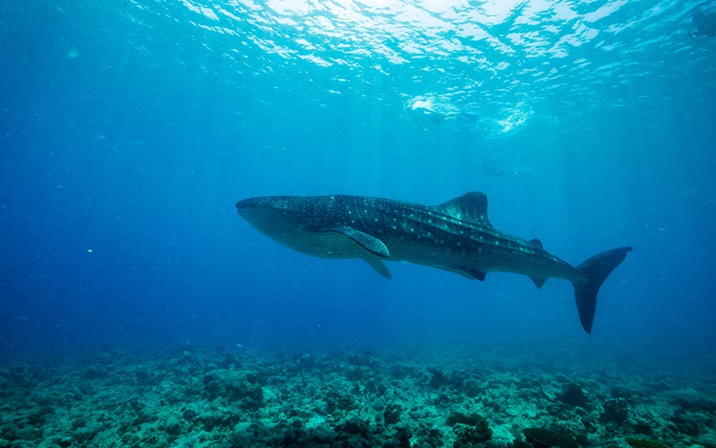与世界上最大的鱼一起游泳——友好温和的鲸鲨。这种温和的巨型浮游生物,最少可以长到十米以上!南阿里环礁附近的浅水区是潜水或潜入这些神奇生物的最佳地点,距离水上飞机只有40分钟的路程或乘坐2个半小时的快艇。