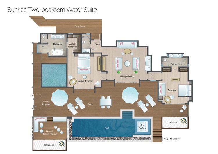入住马尔代夫库达呼拉岛四季度假酒店,选择奢华的双卧室水景夕阳套房,饱览海上日出日落、长天一色的壮美景观。