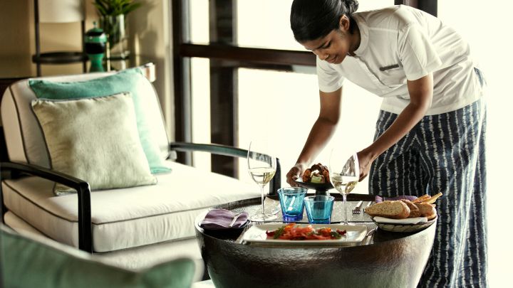 别墅送餐服务全天 24 小时提供送餐服务,可以从品种丰富的菜单中任选各色美食,包括西式风味和亚洲风味菜肴。
