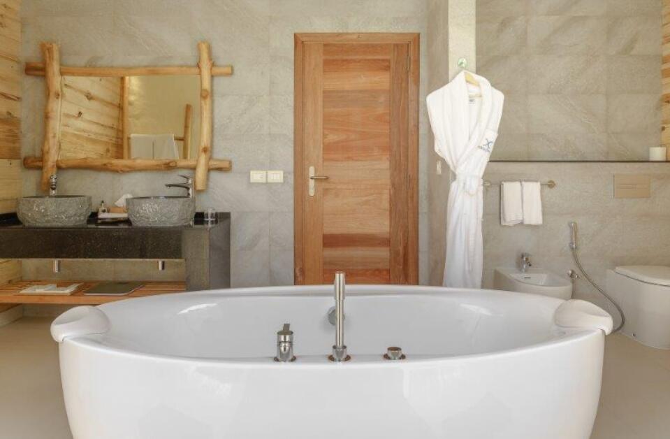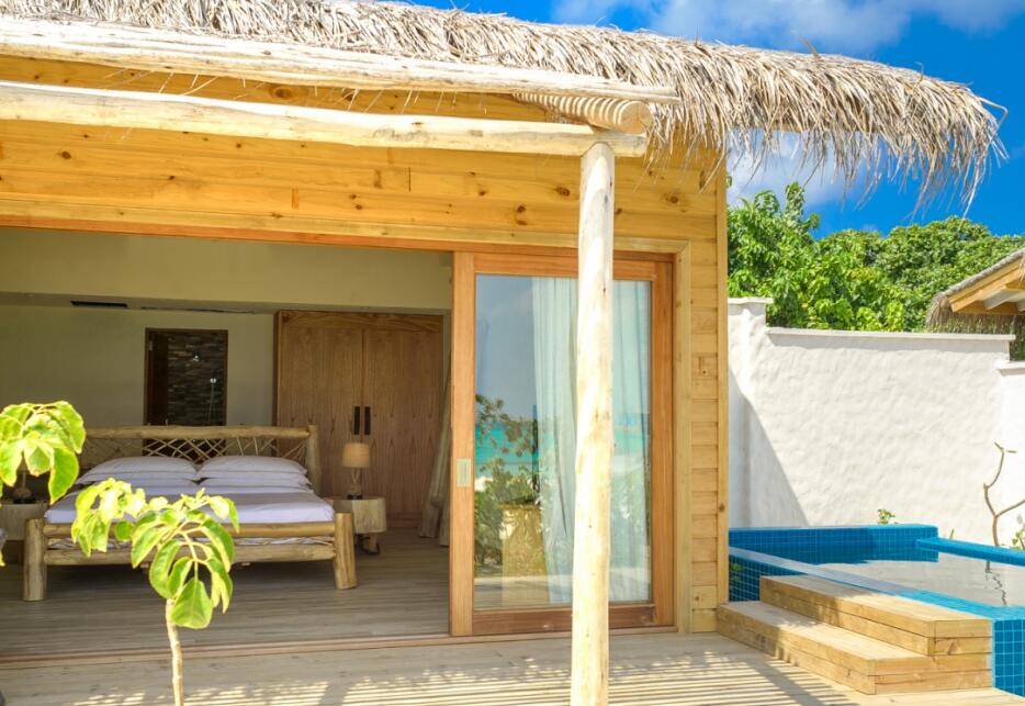 沙滩泳池别墅位于沙滩上,豪华且质朴。房间设有精美的浴室——双人浴缸和花洒淋浴,超大床,沙发以及可饱览私人海滩和大海无限景致的海滨露台。