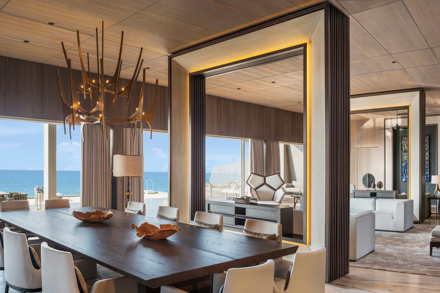 露台位于别墅私人游泳池和青翠花园之间,布置精美,配有豪华沙发床和日光躺椅。带长凳秋千的木制凉亭和浪漫的休息区。同时,落地玻璃门为室内空间增添了自然光线,高耸的木质天花板凸显了套房的轻松氛围。套房拥有现代照明设施,桃花心木地板,主色调为平衡岛屿风格的奶油色,沙色,绿松石色和金色。