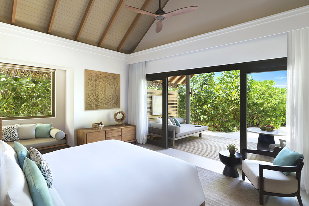 Beach Bungalow 海滩小屋坐落在摇曳的椰子树和茂密的树叶之间,是情侣们的完美之选。可以直接从小屋的甲板上走下来,感受脚趾间柔软的白色沙滩,然后再跳入泻湖的水域之中。房间私密性极佳。