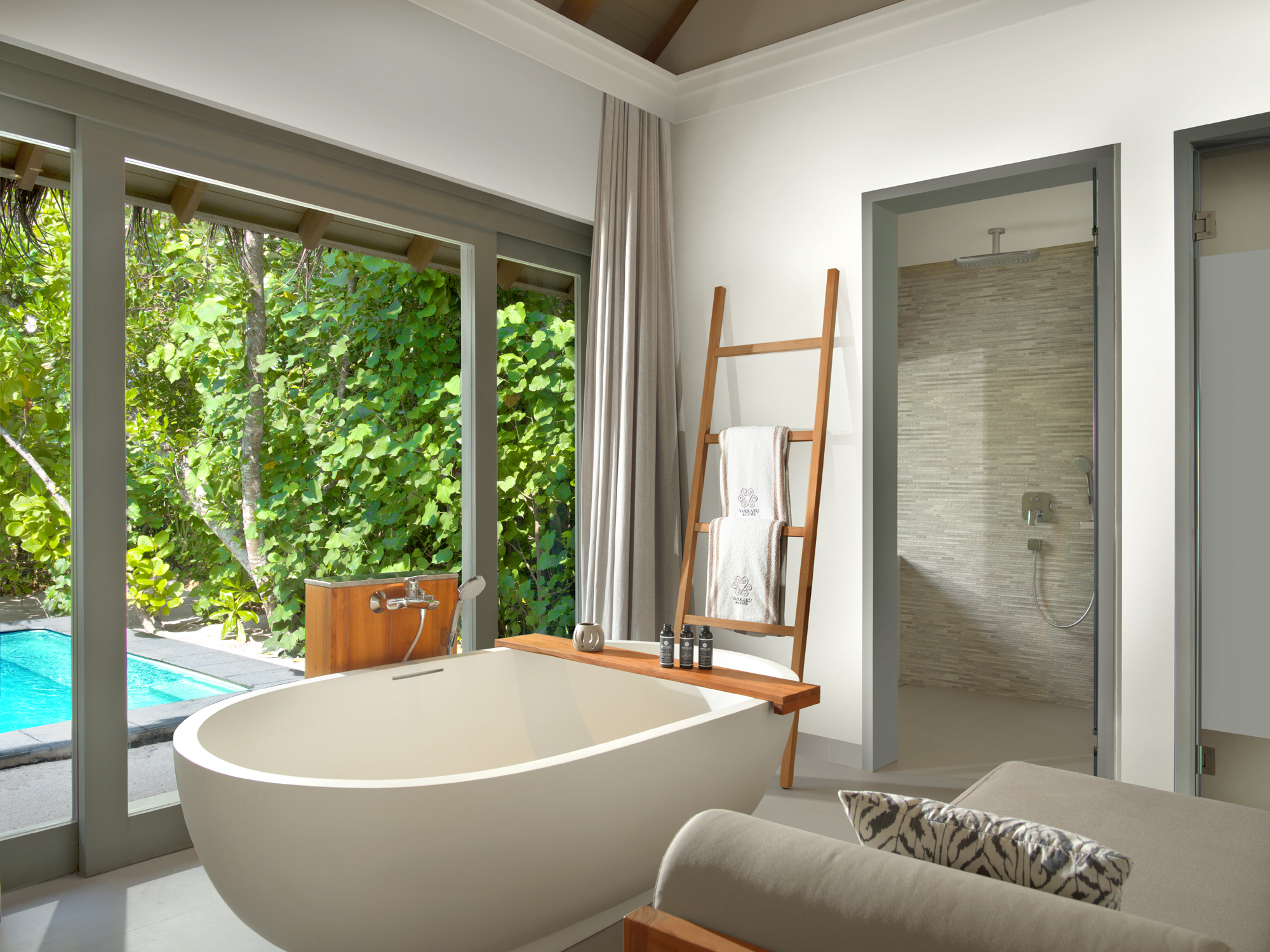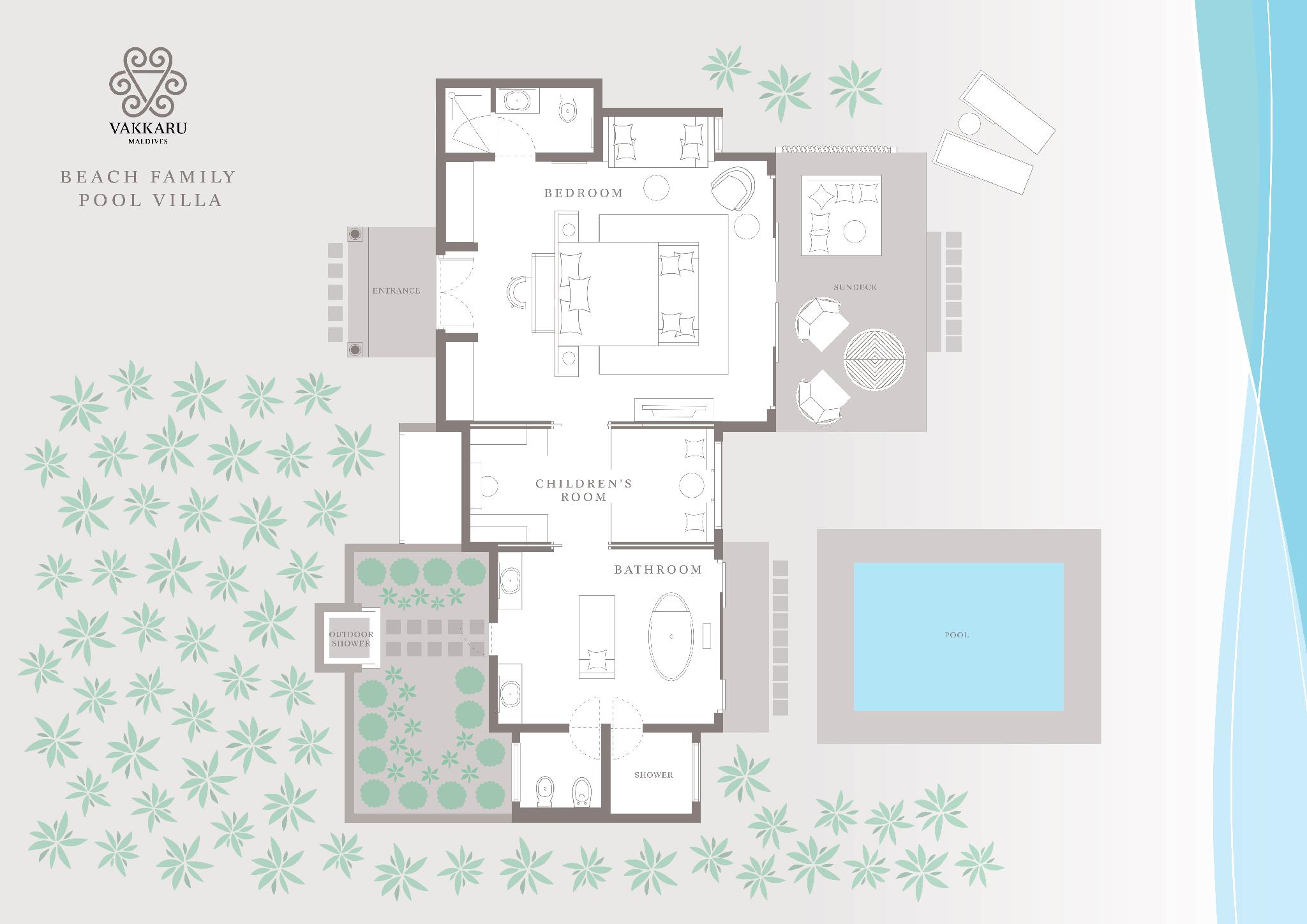 Beach Family Pool Villa家庭沙滩泳池别墅在所有房型中拥有一个独特的设计,设有可供两个孩子使用的独立睡眠区和父母卧室内的沙发床,为有三个孩子(12岁以下)的家庭提供了一个理想的休息和放松空间,在这里享受完美的住宿。