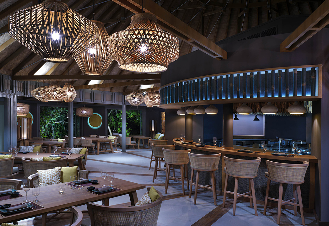 餐厅内有一个热带种植园,优雅的竹制烹饪台,设计精美的厨房,柜台式的餐厅,还有花园凉亭和休息区。