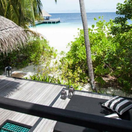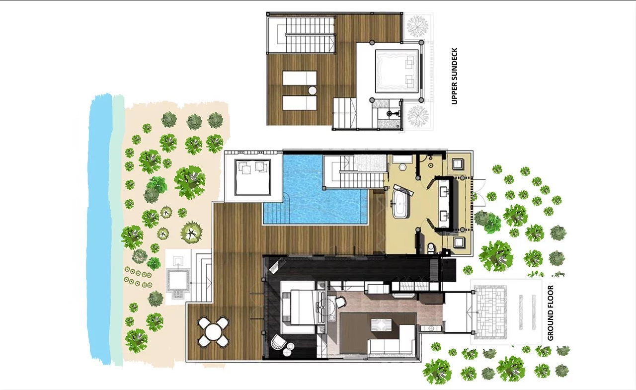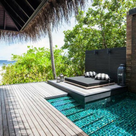 沙滩泳池别墅直通白色的私人沙滩。别墅拥有4.8米的室外游泳池、木质的甲板、私家花园、开放式的起居室和宽敞的卧室。还设有一个步入式衣柜,双水槽浴室,淋浴和浴缸。日光甲板上设有躺椅,在此可以享受完美的海景。