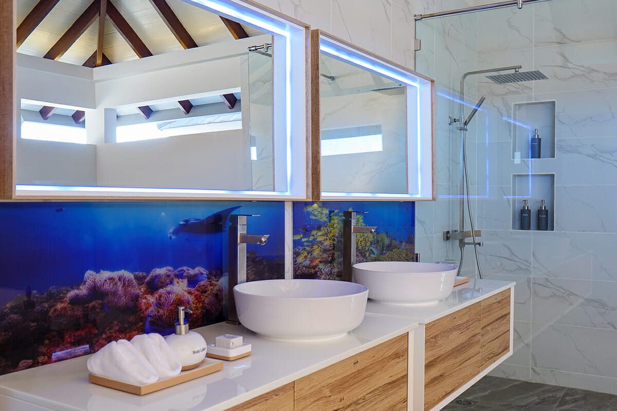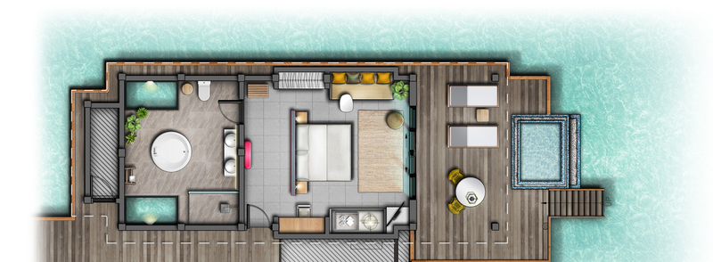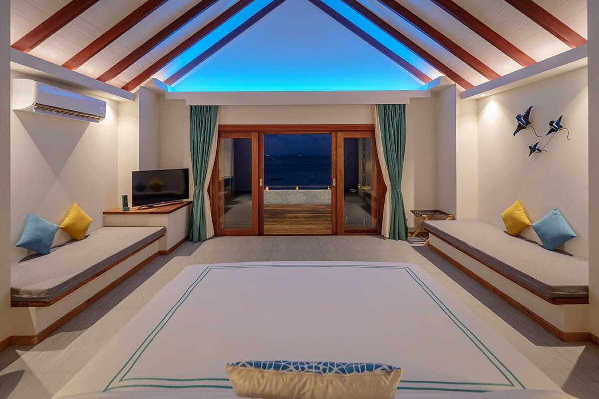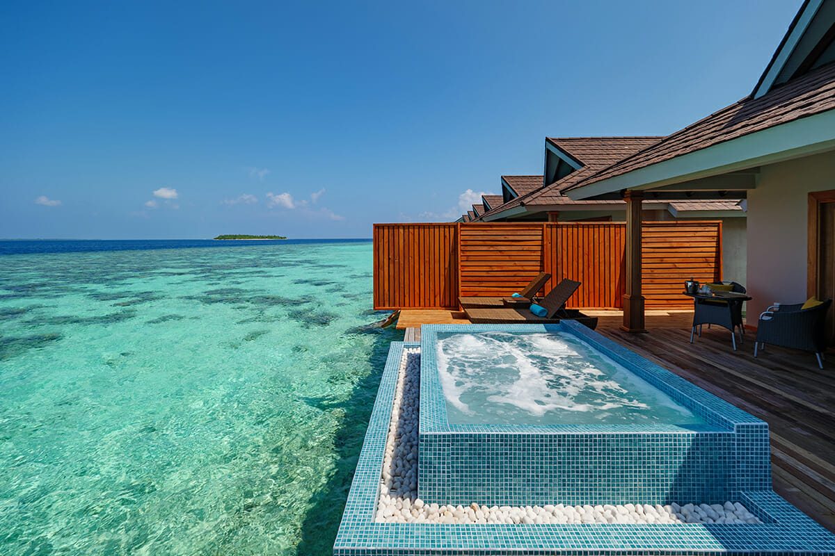 别墅距离拥有海洋生物的珊瑚礁只有几米之遥,可以远眺大洋和遥远的地平线。想象一下,坐在私人阳台上,端一杯鸡尾酒,发现一些有趣的海洋生物,惊喜无处不在。