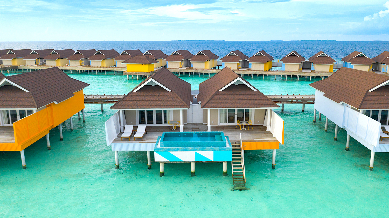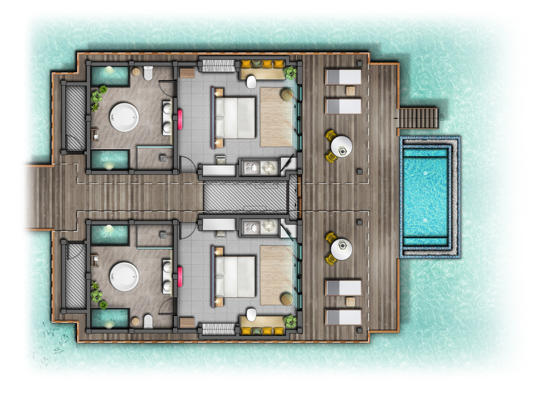 在这个独特的度假胜地,带上家人或聚在一起休息。两卧室泻湖水上泳池别墅完全支持两个家庭的入住且拥有足够的私人空间,两间房间共享甲板和泳池。从别墅可以直接下海浮潜,体验大海的神秘。