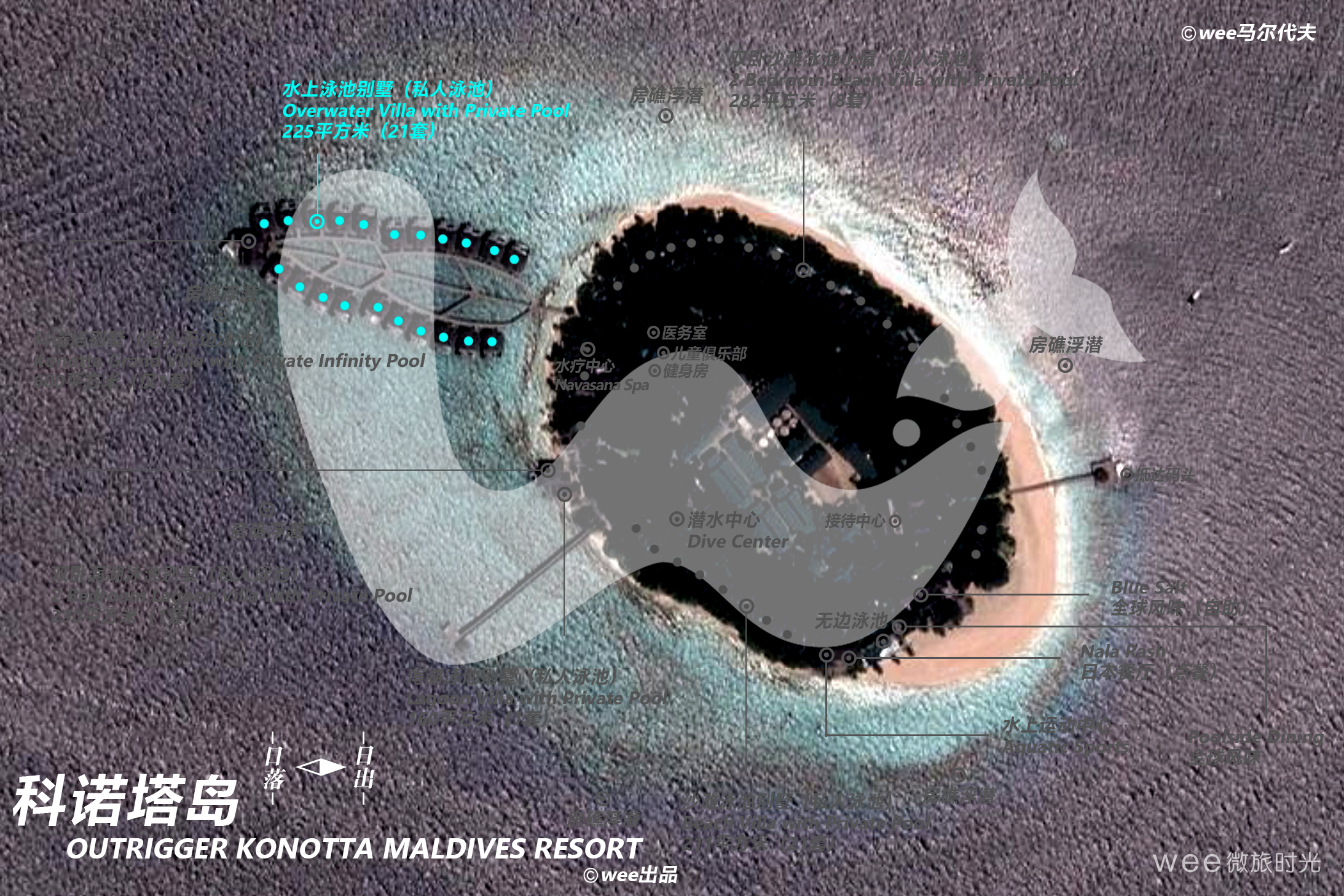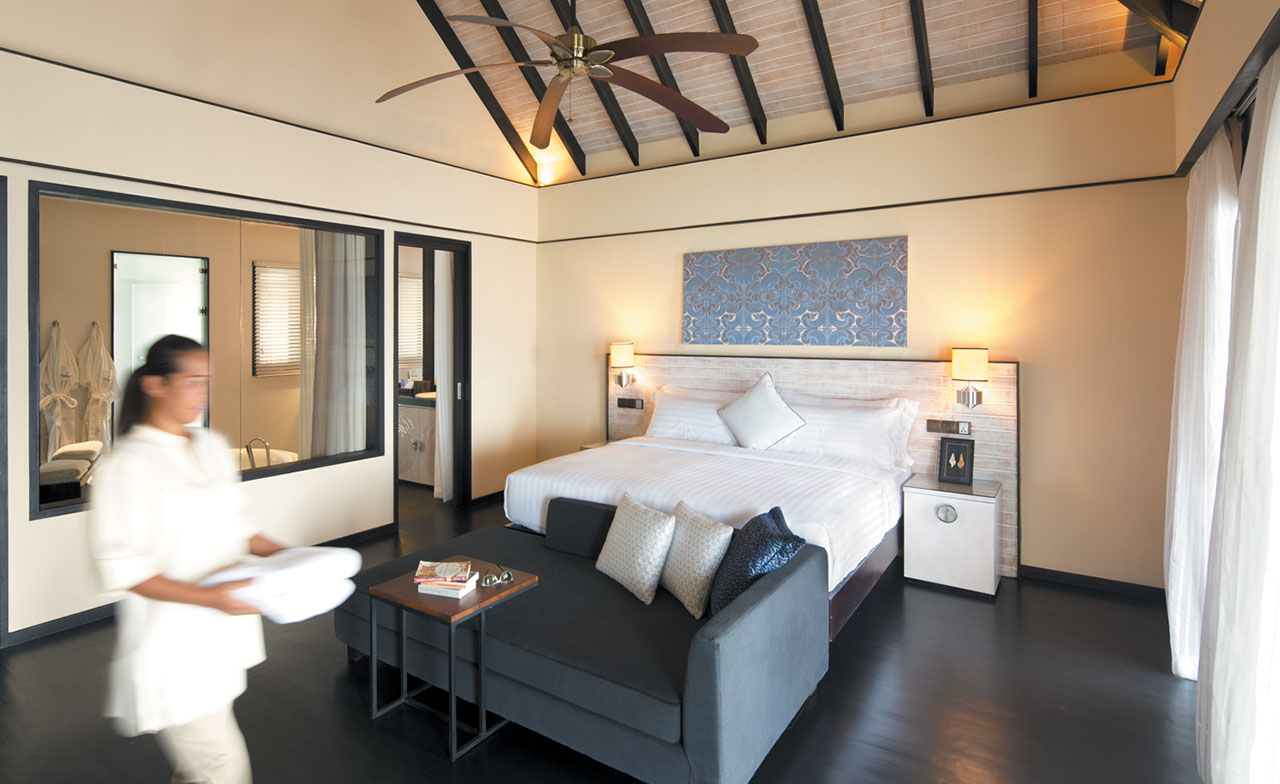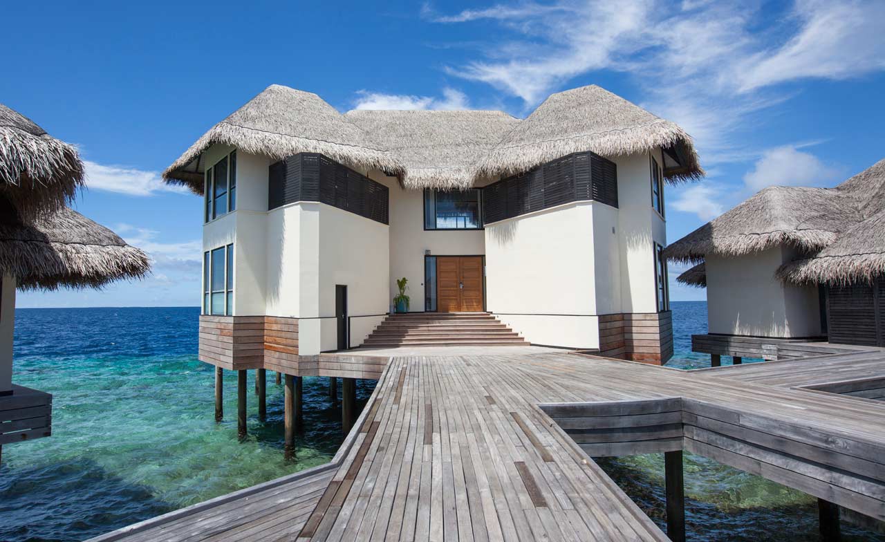 从水上泳池别墅可以直接进入泻水域。在5.2米的无边泳池、户外甲板或遮阴的日光躺椅你可以欣赏到惊人的印度洋景观,落地窗让你不会错过阳光下的任何一刻的风景。客人可以从卧室或宽敞的躺椅休息区进入户外甲板。