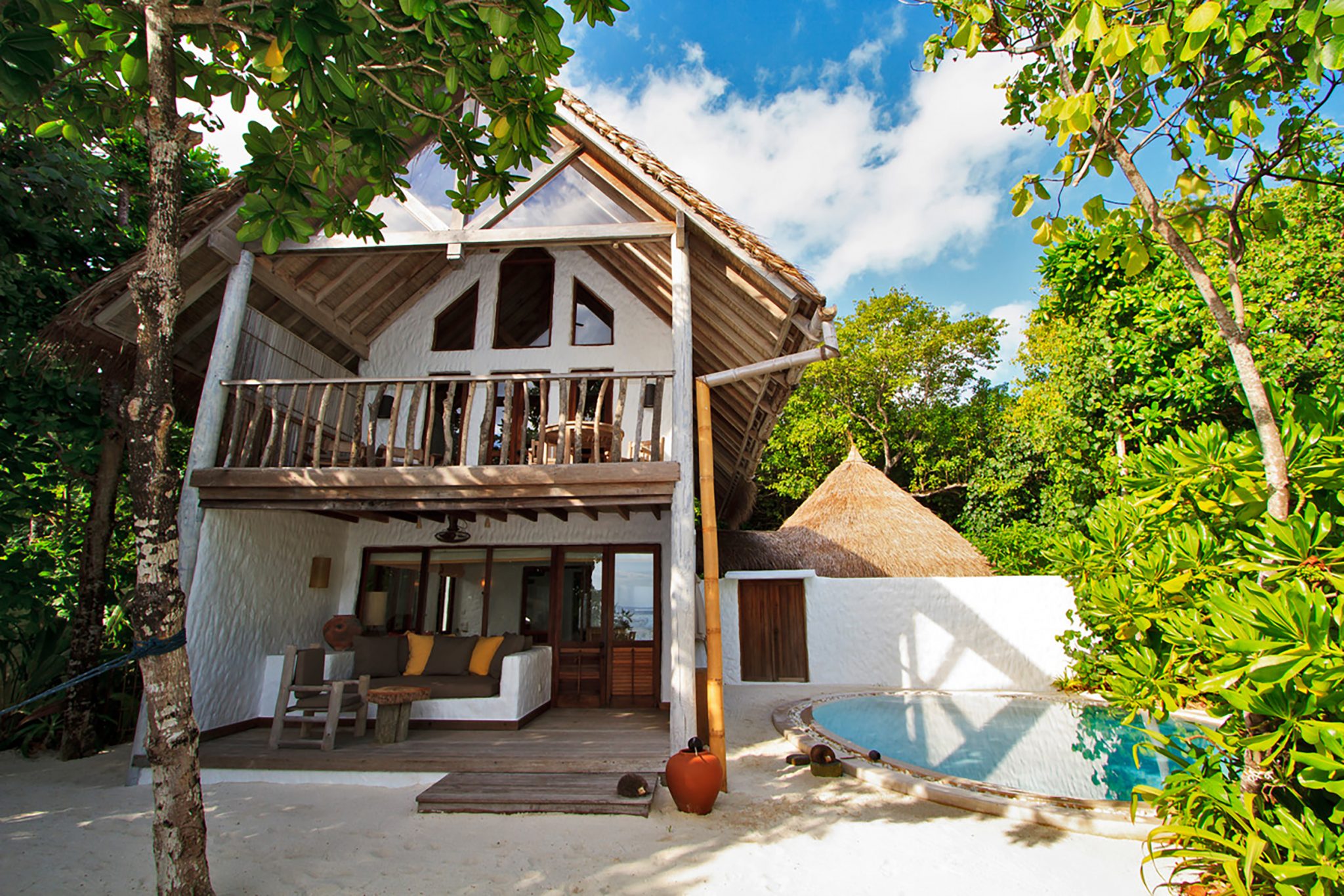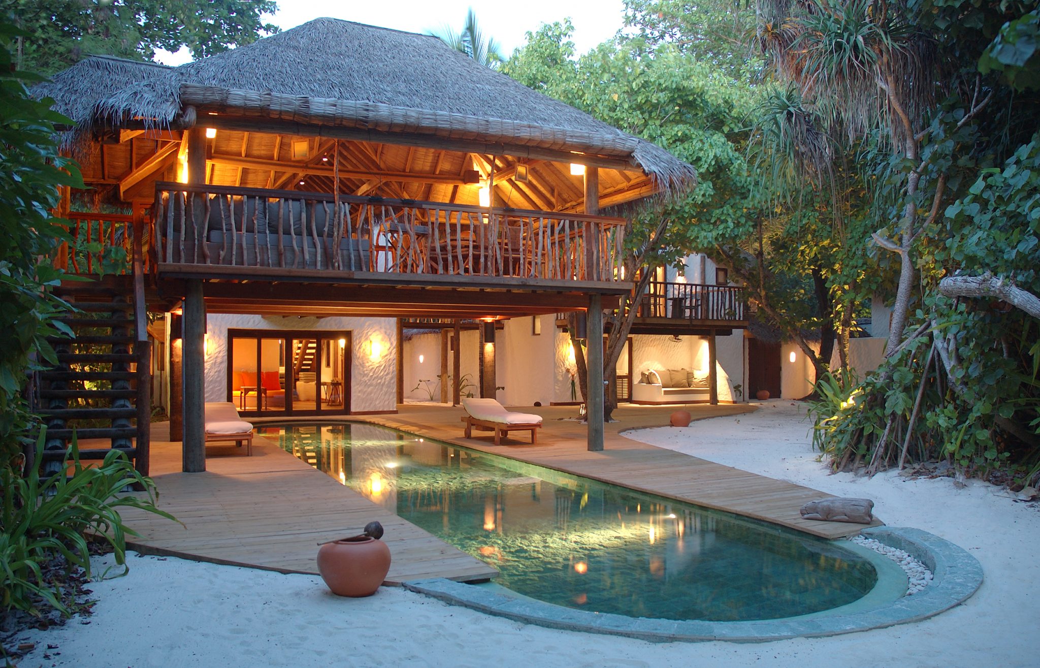 Crusoe Villa with Pool 克鲁索带泳池别墅私人泳池掩映在绿树丛中,可到此静坐,也可跳入池中感受水的凉爽。若想去探索海底的奇观,清澈的马尔代夫海洋只有几步之遥就可到达。