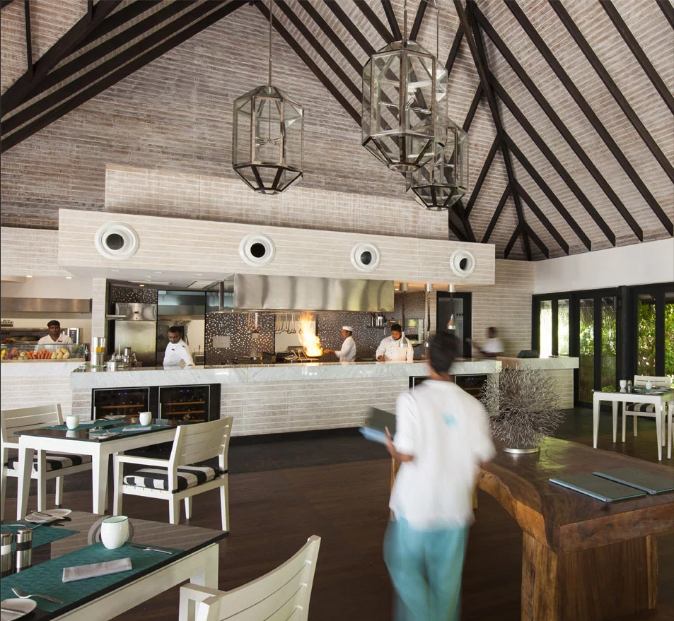 餐厅全天候提供新鲜自然、即时制作的美食。岛屿捕捞的鱼类采用结合亚洲和欧洲风味的烹制方法精心烹饪。
