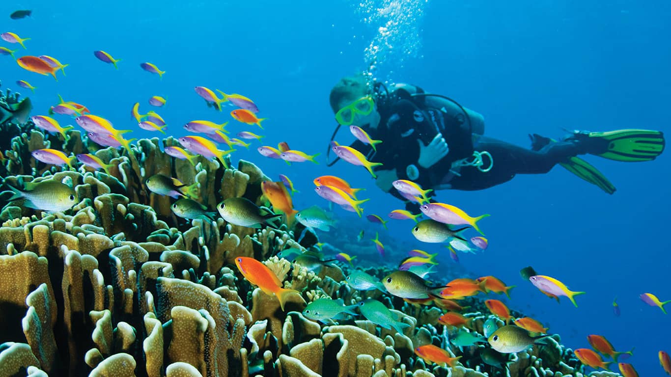 潜礁下面有大量的珊瑚群,或隐藏在岩缝中,或悬挂在岩壁上,既五彩缤纷,又姿态万千,是近距离观赏各类海洋生物的理想场所,其中包括珊瑚鱼群和海龟以及各种鲨鱼。