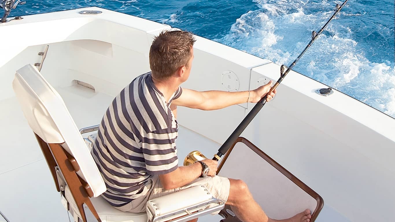 在长为 16.7 米(55 英尺),专为公海竞技钓鱼设计的 High Flyer 渔船上捕捉大金枪鱼、旗鱼或鲯鳅。这艘装饰豪华的 High Flyer 渔船是当地首屈一指的优质渔船,船上配有一台 81 厘米(32 英寸)的平面电视、蓝牙扬声器及其他先进设施。
