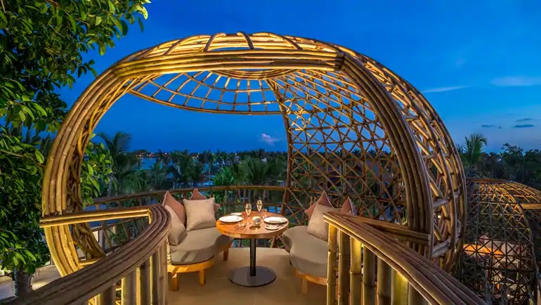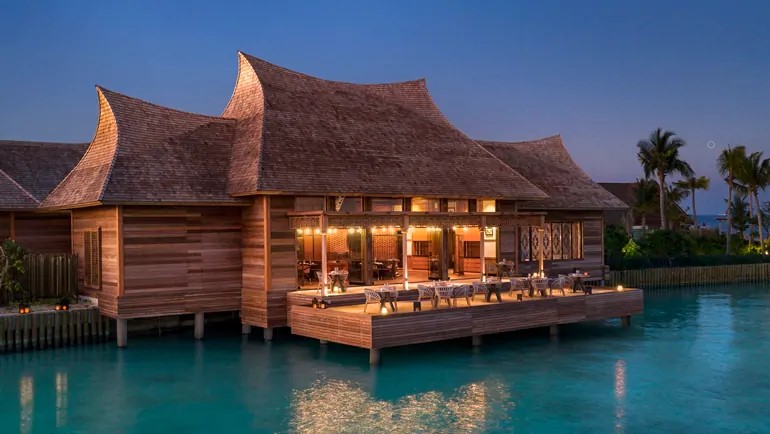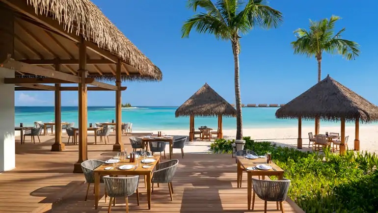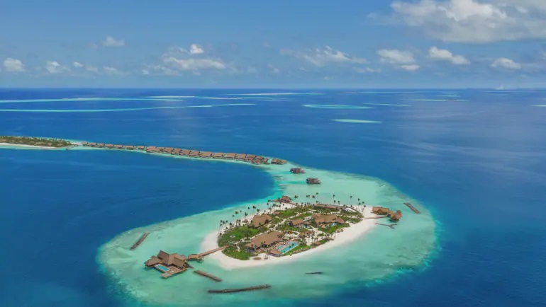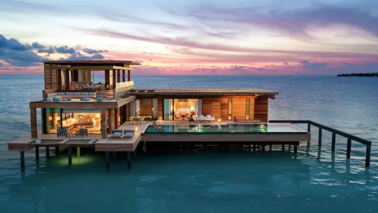 希尔顿旗下奢华品牌华尔道夫酒店及度假村,横跨三个岛屿和一座私属珊瑚礁,由Stickman Tribe公司操刀,122间带私人泳池的海滩,礁石和水上别墅,每一栋都可将印度洋风光尽收眼底。两卧室或三卧室别墅非常适合全家人散步,拥有额外的空间,高度的私密性,全海景和独特的户外设施。