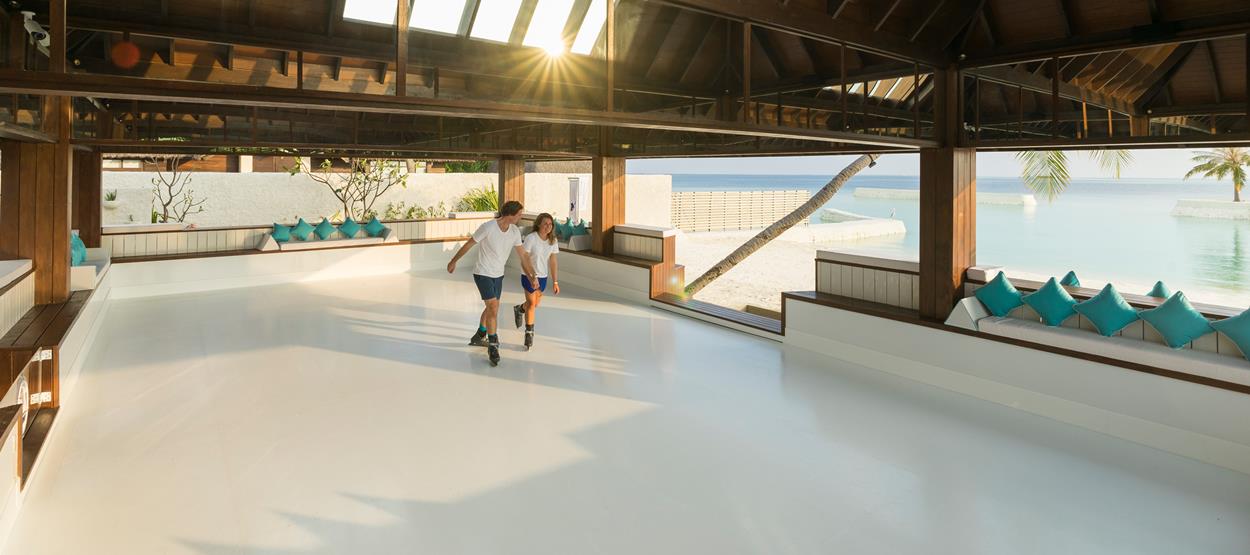 卓美亚维塔维丽酒店建立的马尔代夫首家溜冰场总面积 170 平米,宾客既可在看台上观看或练习溜冰,也可在 87 平米的溜冰区内打冰上曲棍球。