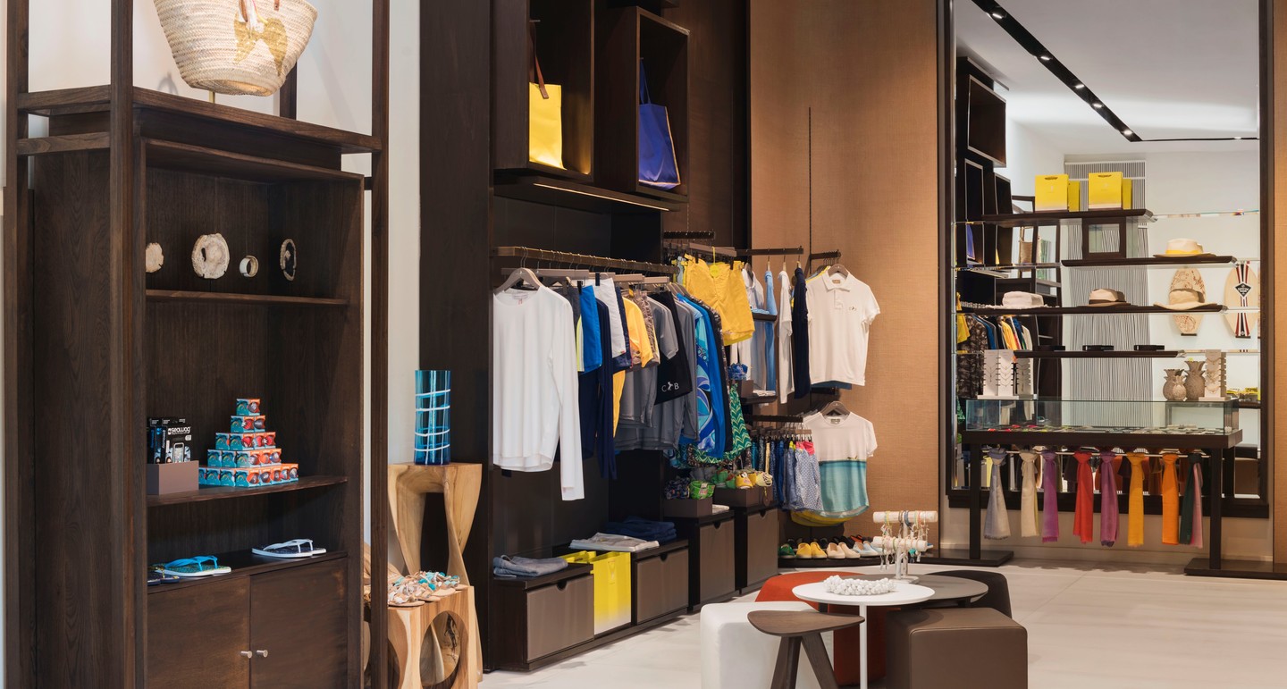 岛上概念店精心设计,精心着色。以白马庄园岛的流行黄色和暖色调灰褐色纹理为主题,店内的服装艺术品、礼品和配件等是由当地以及国际设计师大胆设计的。