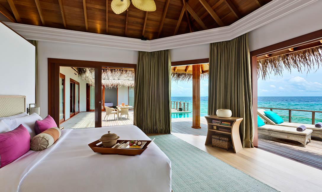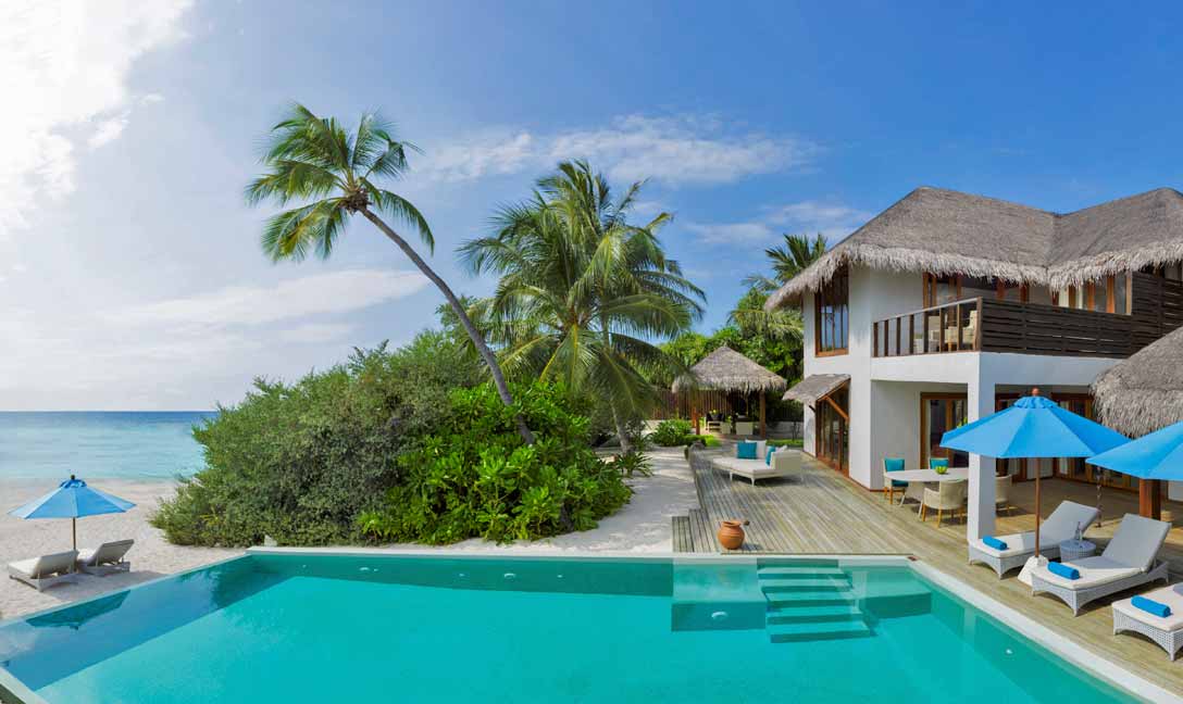双卧海滩泳池居所是着重于品位、隐私和空间的沙滩小楼,是一栋两层楼高的开阔住宅,既精致奢华,又温馨舒适。对于想要享受一个安静隐蔽的假期的家庭或是一众好友,双卧海滩泳池居所是岛上最适合的一处地方。