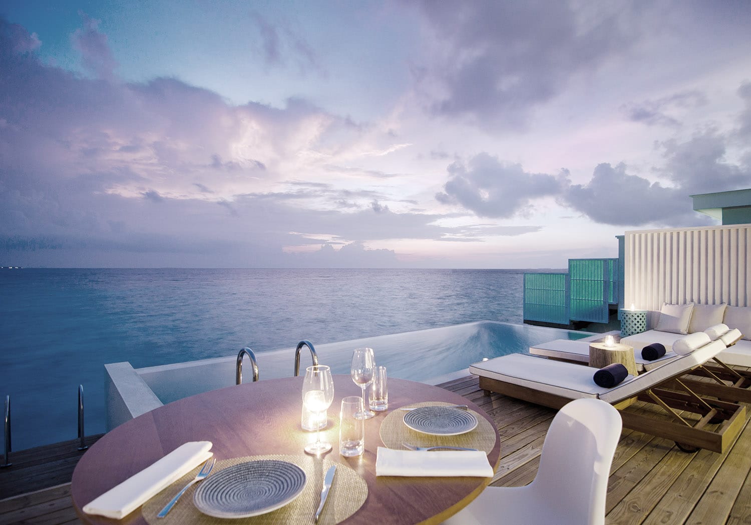 宽敞的阳光甲板俯瞰着水面。私人泳池像天空一样蓝。在Amilla's Ocean Reef Houses眺望日落美景,目光所至尽是海洋和天空。私密的水上别墅准备了充足的奢侈级日用品;抛光木地板,深陶瓷浴缸,完整的娱乐系统。别墅位于珊瑚礁上方,坐拥于珊瑚丛中,丰富的海洋生物就在房间下游来游去。