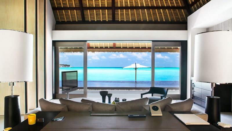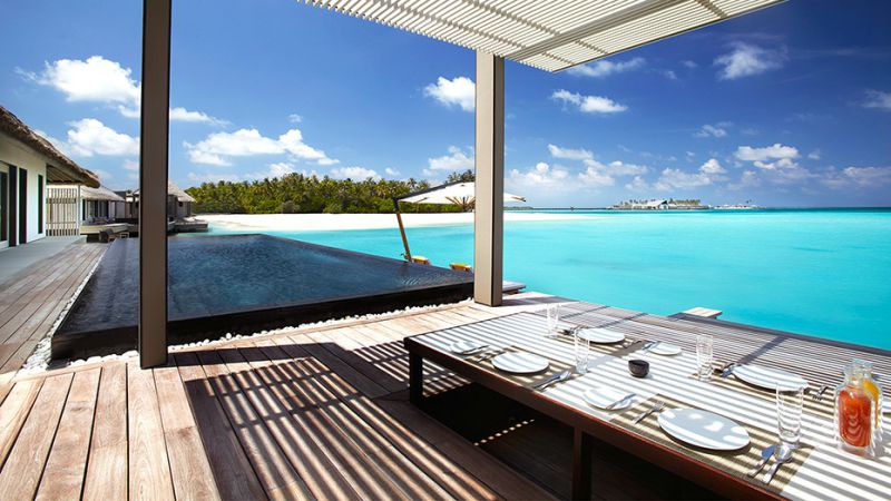 奢华的Cheval Blanc Randheli度假酒店位于诺鲁环礁(Noonu Atoll),坐落在马累(Male)北部。这栋别墅设有无边泳池、客厅和化妆间。水上平台设有餐桌、下沉式长椅和室外休息室。卧室俯瞰泻湖或大海。私人浴室配有浴缸以及室内和室外的花洒淋浴。