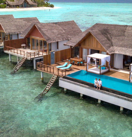 酒店107间私人别墅,6种房型,专为满足客人的个人喜好而设计,水屋不多,只有14间;沙屋有93间,或坐落在茂密的植被中,位于白色沙滩的第一排,或者坐落在波光粼粼的绿松石泻湖之上。所有的客房都有免费wifi覆盖,部分别墅拥有自己的私人无边泳池。