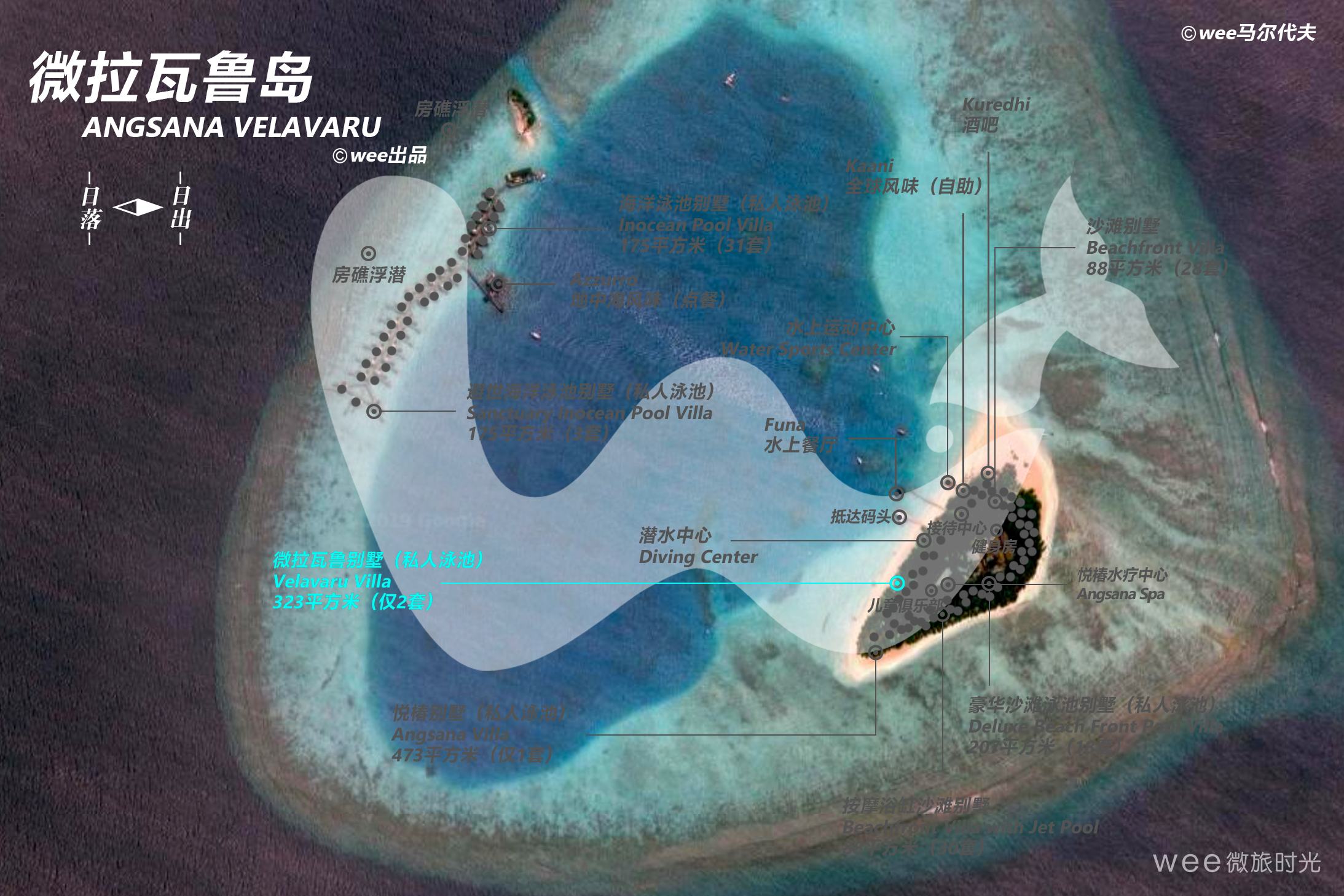 维拉瓦鲁岛别墅使用热带茅草屋屋顶,卧室的门通向木制走廊,打开卧室的门就可以享受精彩纷呈,冷人炫目的岛屿度假的快乐。这个别墅有室内与室外淋浴,可以通向大海与泻湖,跨入宁静的专属别墅里的游泳池,畅游嬉戏,享受这浪漫的度假之旅。