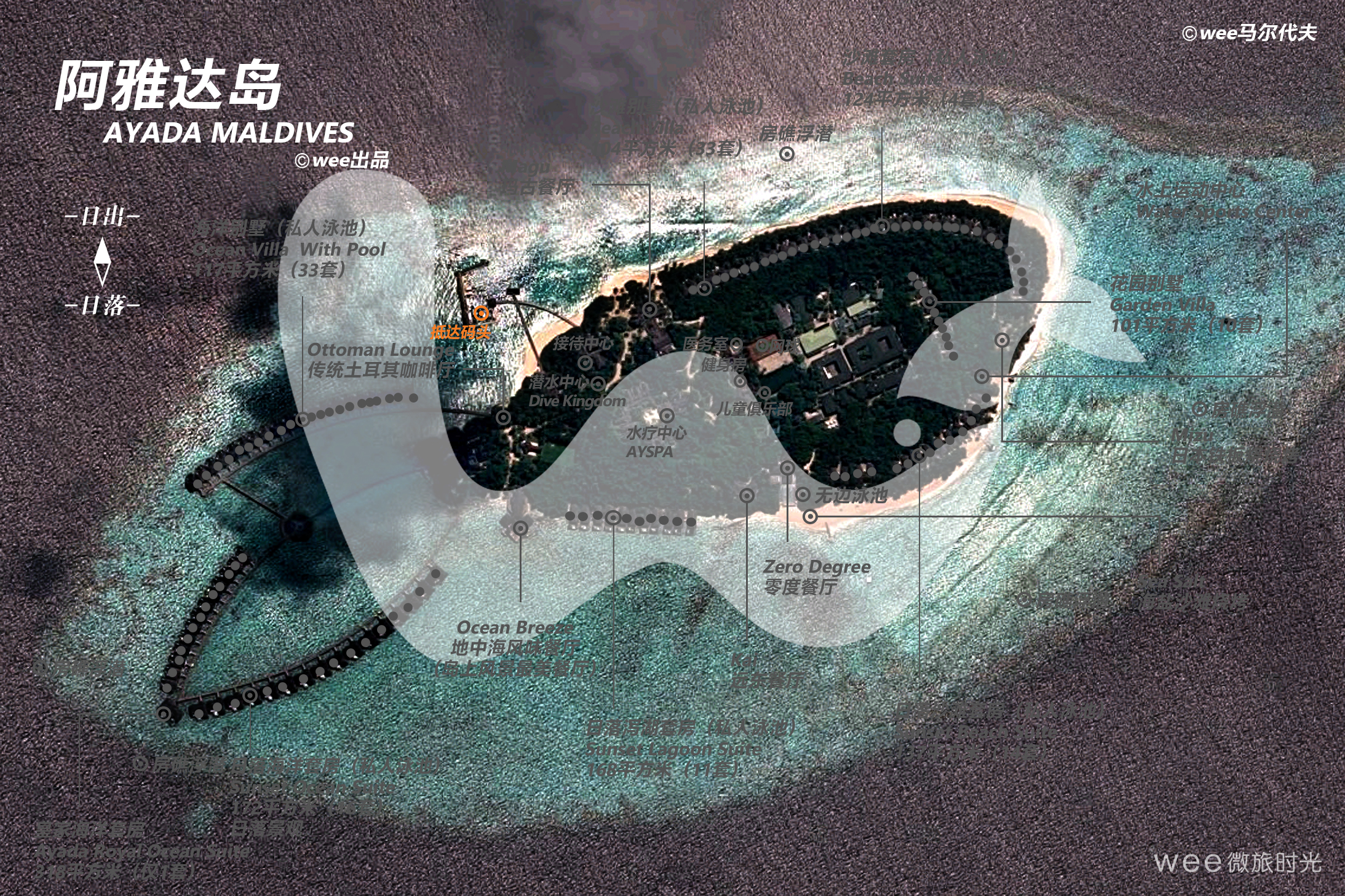 经过近1小时的快艇,远远就可以看到Ayada的地标-白色灯塔!这也意味着你已经到了抵达码头,下了快艇后,会有一个欢迎仪式,阿雅达岛经理会带领相关的管家(配备好的私人管家)及工作人员,敲着手鼓在码头迎接,然后为每一位客人佩戴纪念小挂件,令人倍感温馨。