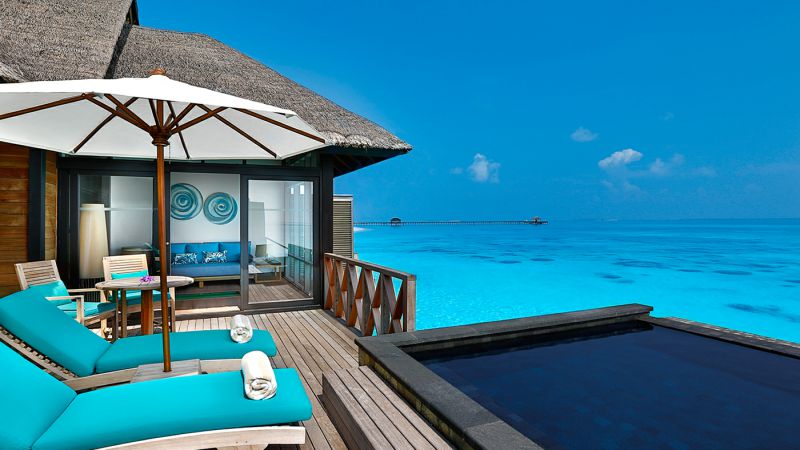 别墅享有迷人的日落美景,享有壮丽的水景,房间里可以通过地板上的玻璃面板欣赏不同的海洋生物,在无边泳池中放松身心,在豪华的室内环境中放松身心。日落水上别墅中,可以欣赏到无边泳池的景色,欣赏到彼此融合的充满活力的色彩。