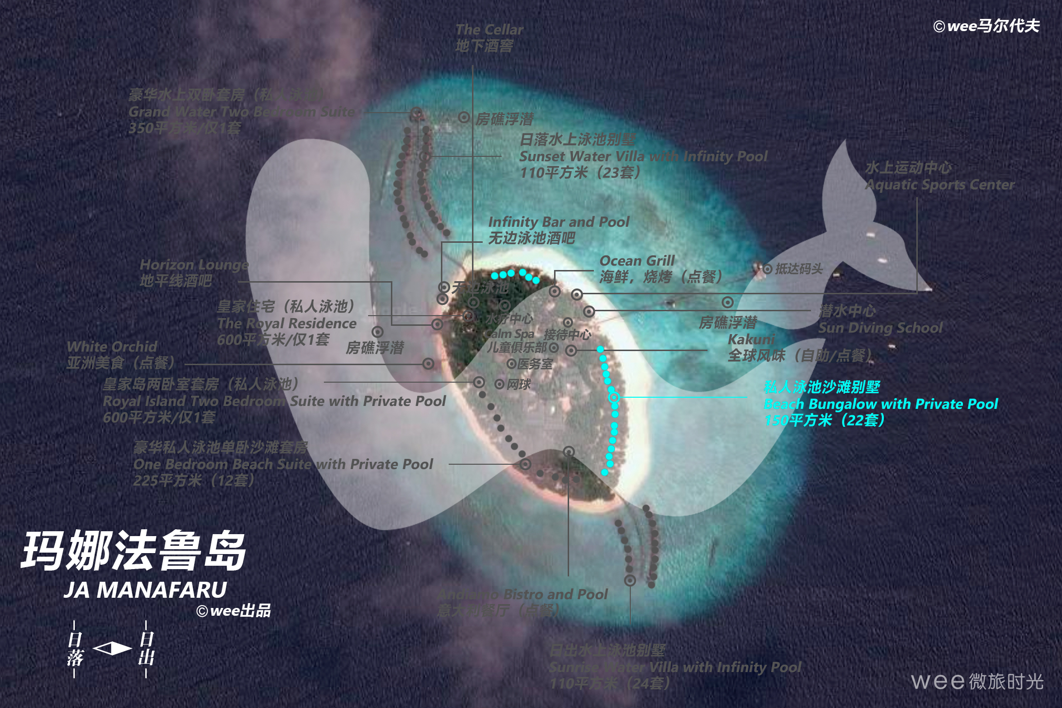 玛娜法鲁到沙滩泳池别墅,周边环绕一片热带植物林,沙滩泳池别墅有宽敞的起居区、休息区和睡眠区,房间与壮丽的大自然完美融为一体。开放式的内部设计让沁人心脾的海风畅通无阻,开放式浴室、瀑布水池和配有舒适躺椅的阳台,同样向大自然敞开胸怀。一间私人凉台房直通海滩,是在日光下饱览美景的完美场所。