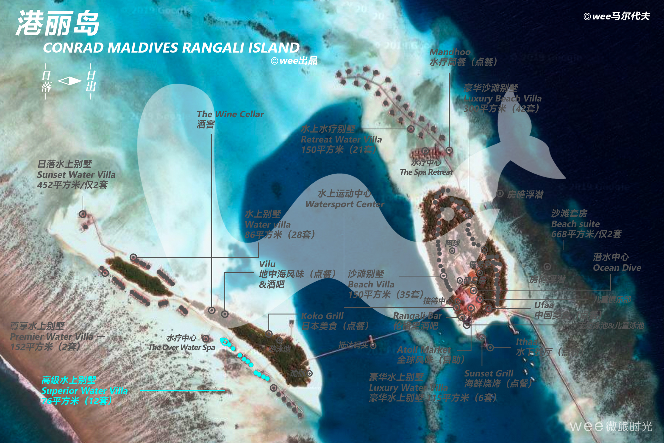高级水上别墅每个都带有私人的阳光露台,整套的沐浴设施和海景浴缸,每套别墅都有一个大衣橱。别墅的另一个特色就是在露台上有一个按摩浴缸,房间内配备了宽屏电视,DVD播放器和环绕立体声音响。