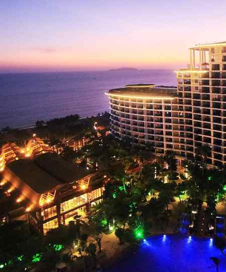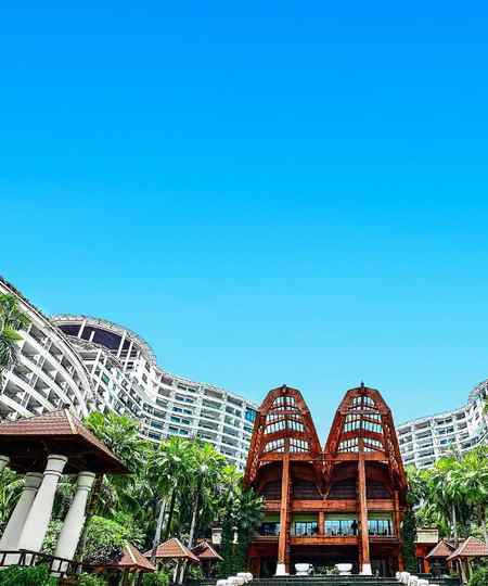 酒店位于三亚湾路中段,三百余间一线海景客房,阳台私人浴缸,不同角度尽享中国南海。又有5大泳池,屋顶无边际泳池和悬挑透明泳池是热门的网红打卡地。