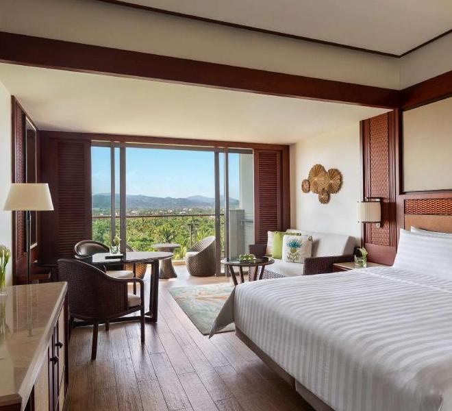 酒店位于海棠湾中心地带,拥有宽敞舒适的客房与套房,均配备私人阳台,可饱览心旷神怡的海景、园林和泳池景观。并提供了多种多样的娱乐休闲设施供客人使用。