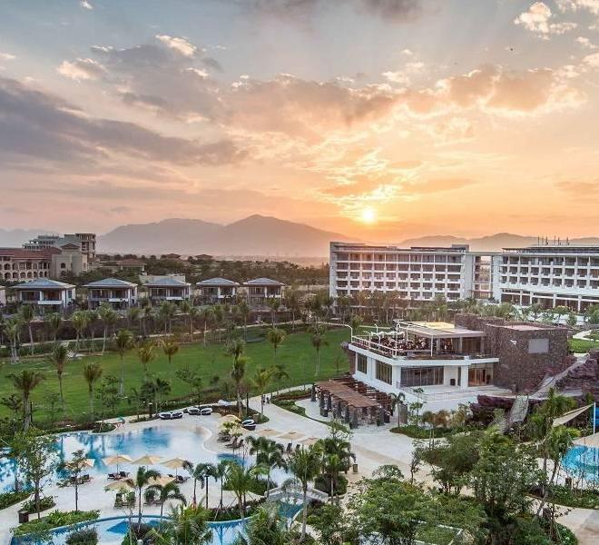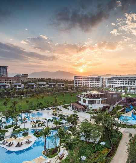 酒店位于海棠湾海棠北路,毗邻三亚国际免税城,坐拥碧海幼沙,绵延椰林。主张清逸的现代海岛风情,3,000平米开放式大堂,将南中国海景致一览无遗。
