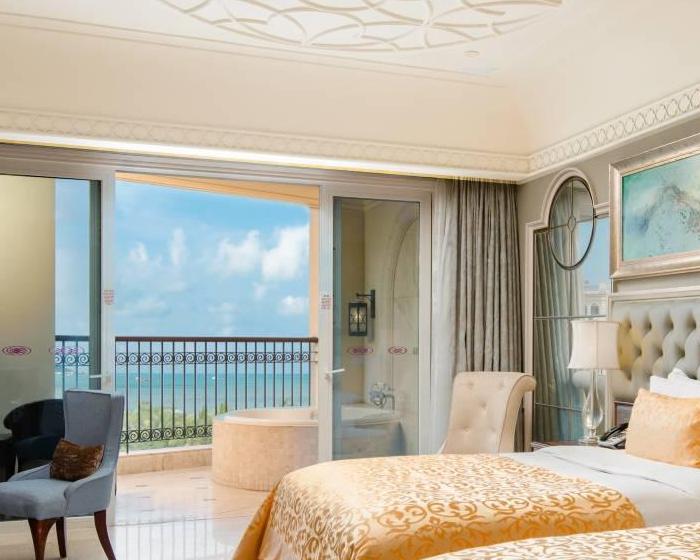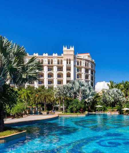 酒店位于三亚湾路中段,三百余间一线海景客房,阳台私人浴缸,不同角度尽享中国南海。又有5大泳池,屋顶无边际泳池和悬挑透明泳池是热门的网红打卡地。