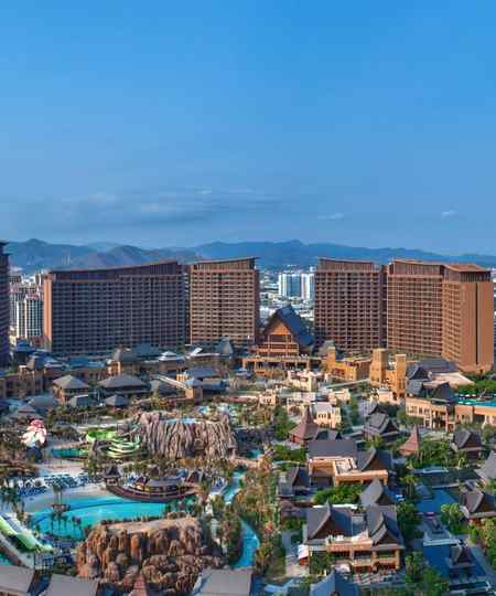 酒店位于三亚湾路中段,三百余间一线海景客房,阳台私人浴缸,不同角度尽享中国南海。又有5大泳池,屋顶无边际泳池和悬挑透明泳池是热门的网红打卡地。