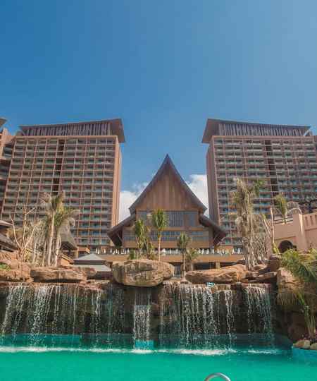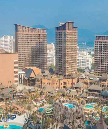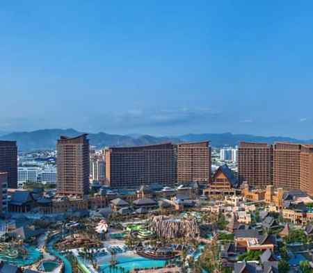 酒店位于三亚湾路中段,三百余间一线海景客房,阳台私人浴缸,不同角度尽享中国南海。又有5大泳池,屋顶无边际泳池和悬挑透明泳池是热门的网红打卡地。