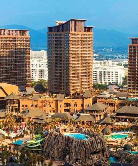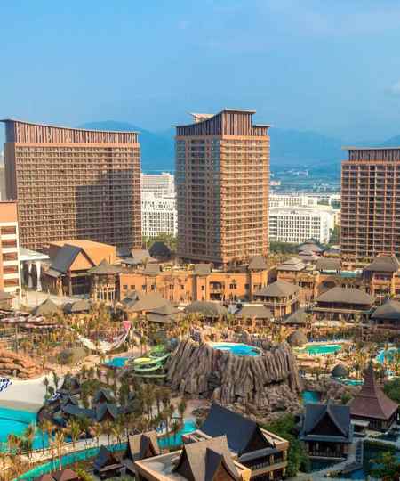 酒店位于三亚湾路中段,三百余间一线海景客房,阳台私人浴缸,不同角度尽享中国南海。又有5大泳池,屋顶无边际泳池和悬挑透明泳池是热门的网红打卡地。