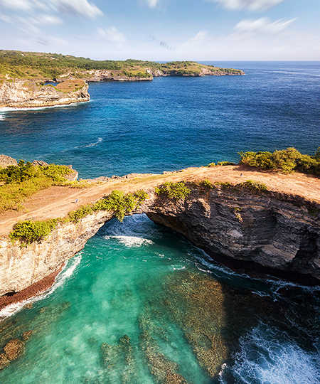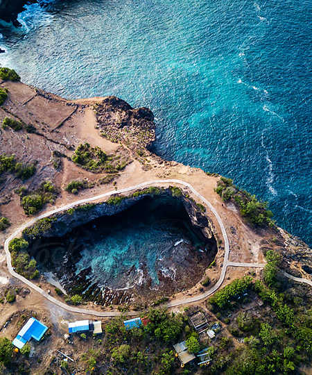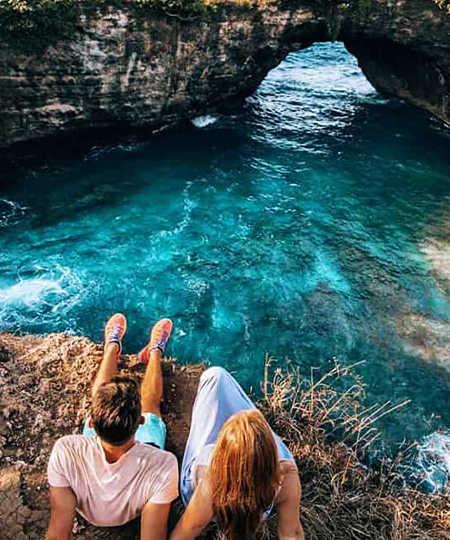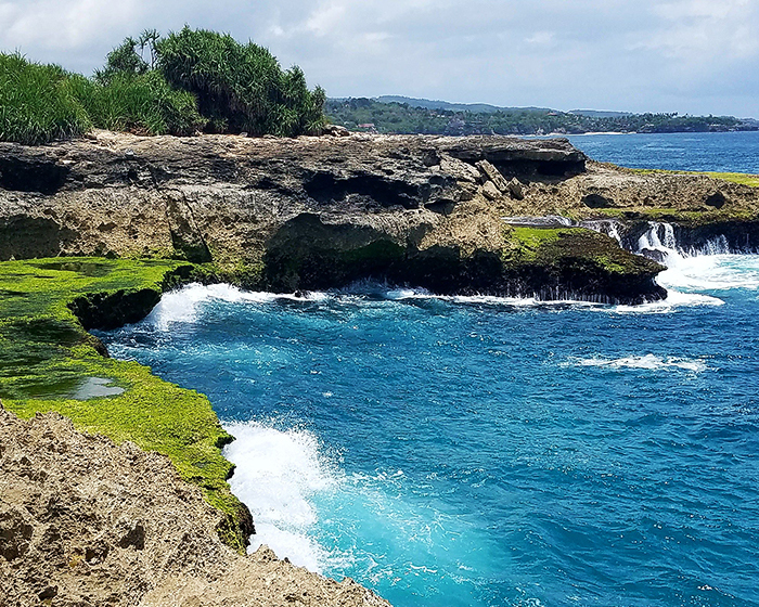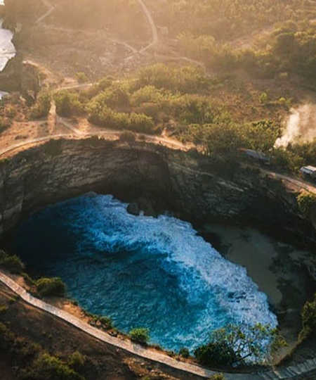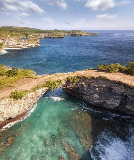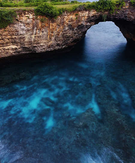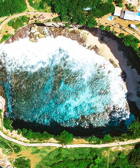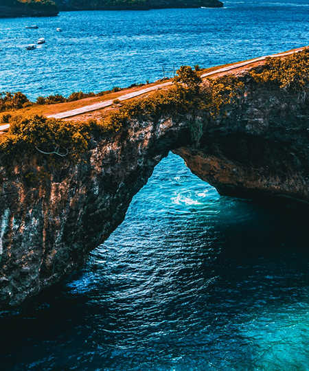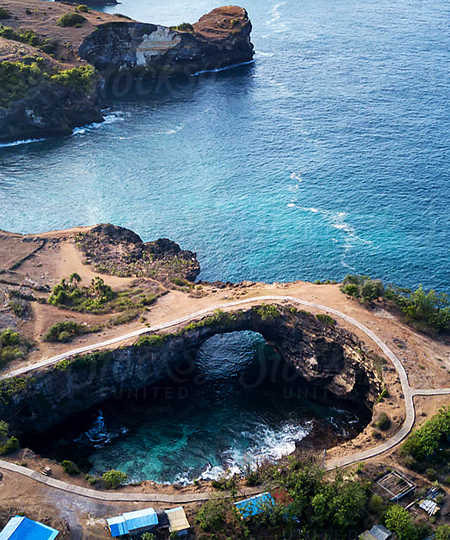 巴厘岛破碎沙滩就在天神浴池附近几百米处,车开到景点需要步行前往。远远你就会看见蔚蓝的海和一条环形的道路下,有一道拱门,看到的第一眼觉的人为或者武器砸穿的,这里便是破碎沙滩了。