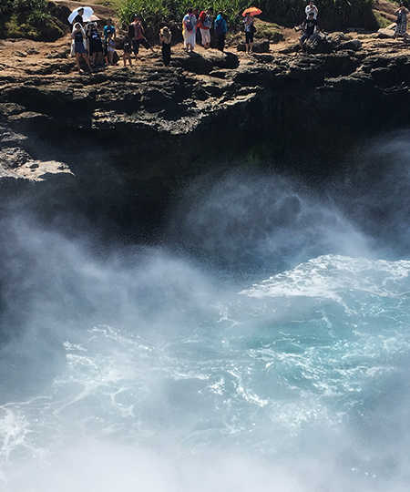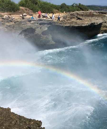 在蓝梦岛,有一处仙境般的景点,那便是大名鼎鼎的恶魔的眼泪Devil's Tear了,也是巴厘岛特别值得打卡的景点,景色非常震撼。恶魔的眼泪实际是一个小的悬崖洞穴,涨潮的时候海浪在这里被冲出二三十米高,不禁让人感叹大自然带给我们的震撼。