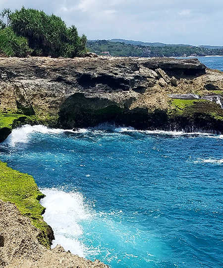 在蓝梦岛,有一处仙境般的景点,那便是大名鼎鼎的恶魔的眼泪Devil's Tear了,也是巴厘岛特别值得打卡的景点,景色非常震撼。恶魔的眼泪实际是一个小的悬崖洞穴,涨潮的时候海浪在这里被冲出二三十米高,不禁让人感叹大自然带给我们的震撼。