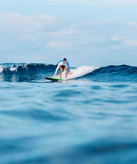 蓝梦岛是可以冲浪的,但适合冲浪的区域比较少,并且水更深,浪更大。虽然水质什么的确实比巴厘岛更胜一筹,但是蓝梦岛的冲浪区不太适合初学者,这个是有一定共识的,毕竟冲浪这个运动还是有一定危险性的,一定要综合实际情况慎重考虑。