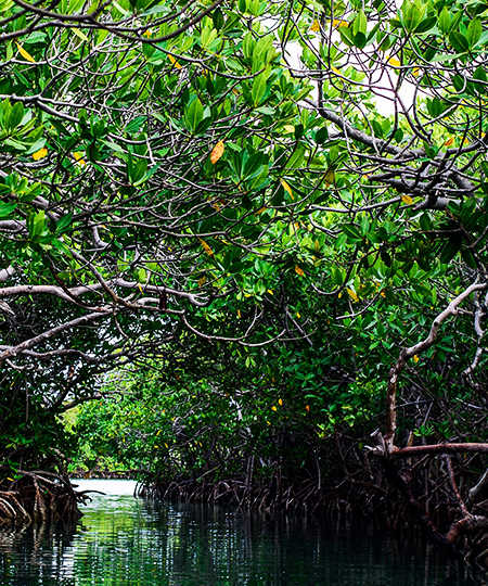 巴厘岛红树林在巴厘岛东南部蓝梦岛上。蓝梦岛的红树林给人的感觉是十分静谧的,乘小船进入到树林深处,整整一片景色都是被红树林包围,体验红树林带来的幽静,安静到可以听见动物窸窸窣窣的声音。