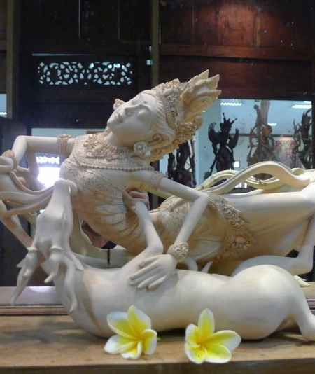 在巴厘岛,木雕村位于MAS, Ubud, Gianyar, Bali, 印度尼西亚。 巴厘岛的木雕艺术很有风格。木雕村内遍布木雕商店及艺廊,每家商店都开放工作室供游客参观,游客可参观木雕师傅的工作,