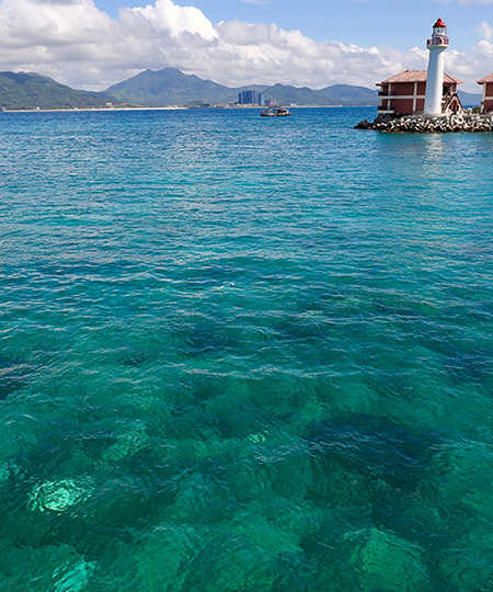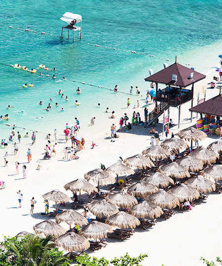 分界洲岛可以感受海底的完美风光,清晰地看到海参、螃蟹等海洋生物,在海洋剧场还可欣赏到精彩的海豚表演。这里的水上运动项目也非常多,如海钓、摩托艇、海上拖伞等,还可以乘坐观光潜水艇进行海底风光探秘。