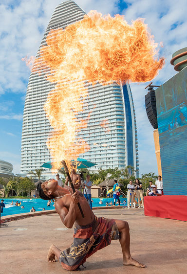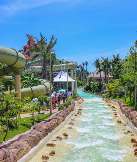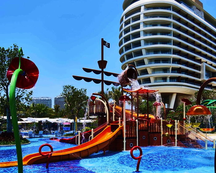 酒店位于海棠北路,雄踞海棠湾,距离国际免税城约数分钟车程。是一座融合酒店,餐饮,购物,水乐园以及水族馆为一体的综合性娱乐度假目的地。