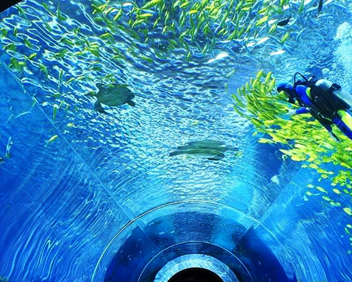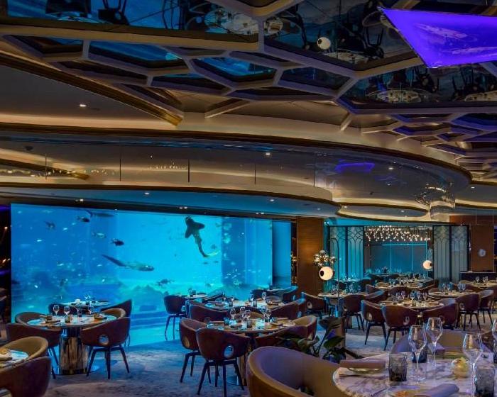 很网红很热门的海底餐厅,在这里还能看到人鱼共游,很新奇的用餐方式,拍照出来很美。